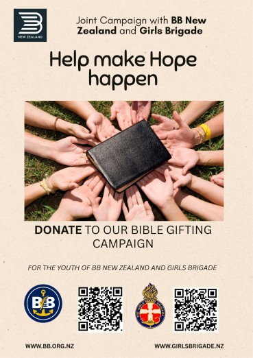BB New Zealand and Girls’ Brigade New Zealand are partnering with The Bible Society to run a bold campaign: to fund and print 3,000 Bibles to be distributed in 2026.